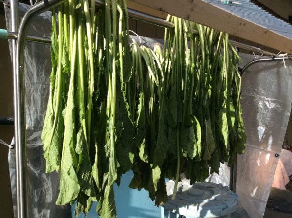 毛糸織り、裂き織りの準備、常設展開用の制作、野沢菜が霜に当たって旨味が増してきたと聞けば、では漬けてみようと5キロ、10キロ。直売所店長の塩沢さんがまた素敵な方で、これまでにもお野菜の植え付けから地元ならではの料理、お大根や野沢菜の漬け方のアレンジを色々教えて頂いていた。「お菜採りにおいで」と言って下さっていたのでお伺いした。野沢菜は株元に包丁を入れて切る事を知らず、カマを持って行ったら笑われた。来年のために覚えておこう!12キロの野沢菜を頂戴してきた。友人知人におすそ分けしたりして10キロは既に消費している。今回の12キロに夫も驚かなかった。良し良し。信州育ちの母の血が流れてるなぁと嬉しく有難く感じる、漬け物作りだ。