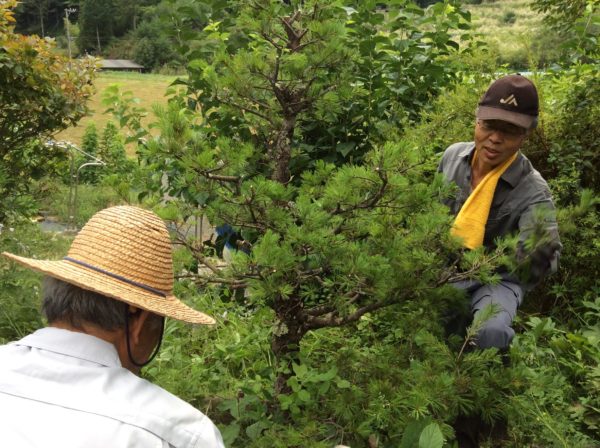 朝仙人春日さんがいつものよう現れ持ってきた野菜を置くと、「ちょっと切るか」と以前から気にしてくれていた松の木の剪定を始めた。そのうち夫も見よう見まね、一緒になってやりだした。仙人は木こりもやれば庭師にもなる。多才な人だ。「自分とこの松だと慎重になるけどよその木ならどんどん切れる^ ^」と楽しそうにチョンチョン。飽きもせずに3本を剪定終わったら、まあスッキリしたこと!! 器用だなぁ。