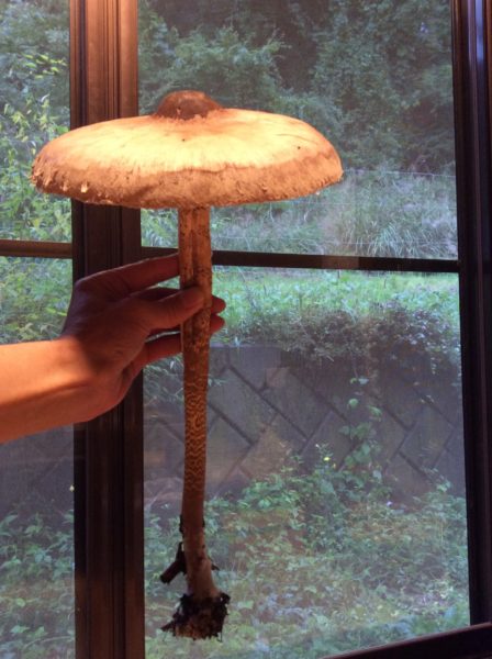 台風、台風で今月の終わりも雨、しかも台風通過だ。夕方近くに仙人がまた何やら手に持って….。え〜っ!作りもんみたいだぁ!にぎり茸という食べられるキノコ。天ぷらかバターで焼いても美味しいとの事。我が家にはバターは無いのでオリーブオイルで焼いて塩でいただこう。