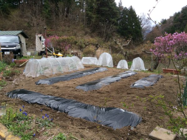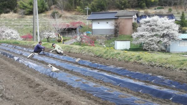4月26日師匠がジャガイモを植えつけるのに28mのひと畝、江本家用に提供してくださり3kの種芋キタアカリとホッカイコガネを教わりながら植えつけました。