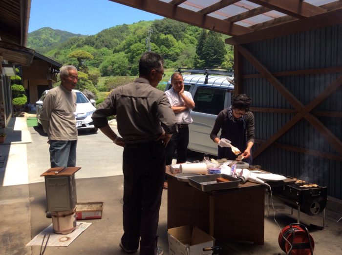 野菜の収穫が始まるとなれば待っているのは人だけではなく、野のものたちもそうなんですね。昨年も主にハクビシンとおサルが頂戴していくケースが多かったようです。上の保子さんがトマトをハクビシンが食べて行ったとしょんぼりして話してくれ、西の下の池上さんは「毎年のことだからね」といつもと同じようにあれこれ植えて、宮脇さんは畑で作っていたナス、トマト、キュウリを今年は母屋のすぐ前に場所を変えて植えられました。「コンパクトでいいですね」と言うと、「サルに取られないようにこんな事をしている自分が寂しいよね」と苦笑いされたのが深く心に残っています。先住者である野のものたちとの関わり方には思う事いっぱいあるのですが、ひょっこり住み着いた者にはわからないこと、長くこの地で生き続けてきた人たちの想いもあるわけで、安易に判断してはいけないことのように感じています。