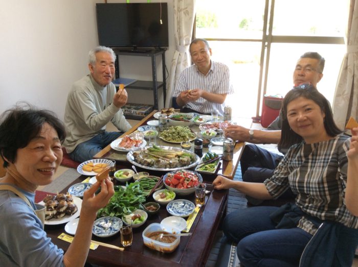 《仙人のスモークチーズ!友人の吉田夫妻のリクエストで春日ハウスでパーティー。シーフードや五平餅。信子さんの美味しい手料理いっぱいで^ ^》